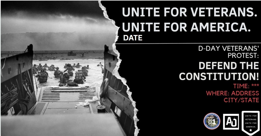 Since Inauguration Day, this Administration and Congress have declared war on our veterans and dedicated active duty servicemembers. In response, 50501 Veterans, along with The Unite for Veterans Coalition and American Opposition, issued a call for a nationwide mass mobilization on D-Day.